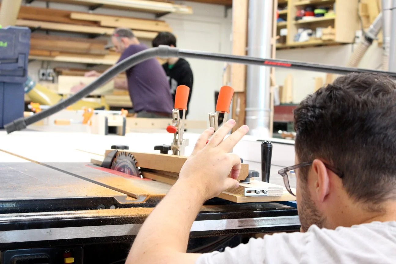 All classes are open to beginners. However, we recommend starting with one of three: the Cutting Board, or the Laminated Box, or the Hallway Bench class for people with some familiarity with using tools. Beginners with no experience can easily start with the laminated box or the cutting board.